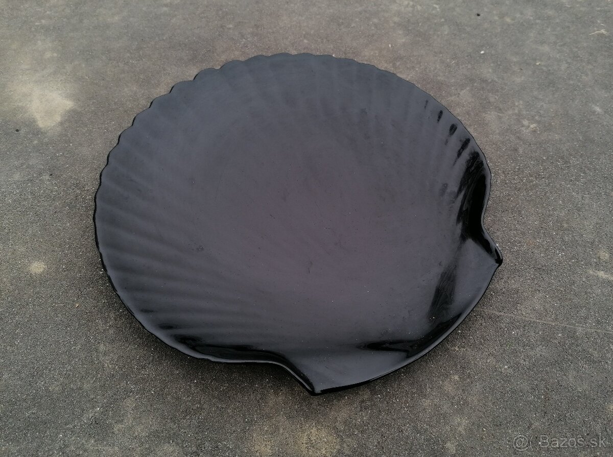 Predám krásnu sklenenú misu- servírovací tanier v tvare Mušle z čierneho skla. V peknom zachovalom stave, bez poškodenia alebo oderkov. Rozmer 28cm x 28cm. Cena 15€.