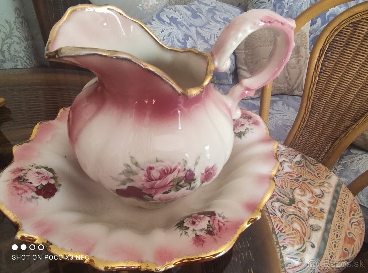Predam starozitnu porcelanovu supravu na osobnu hygienu krcah a umyvadlo.