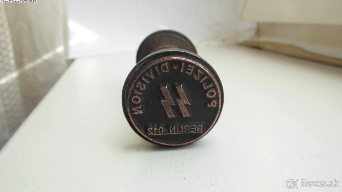 Dřevěné razítko SS, BERLIN-012 POLIZEI - DIVISION, sledujte i mé ostatní nabídky, platí do smazání inzerátu. Žádná propagace, slouží pouze pro sběratelské účely.
