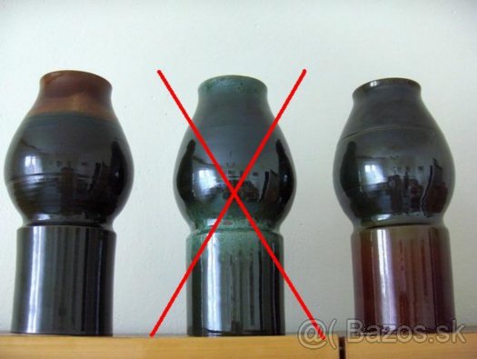 - 2ks veľká zeleno-hnedá váza (tá stredná zelená - PREDANÁ)...rozmery: výška cca 25cm, priemer 10cm - v najširšej časti cca 12cm;.....cena 6€/ks