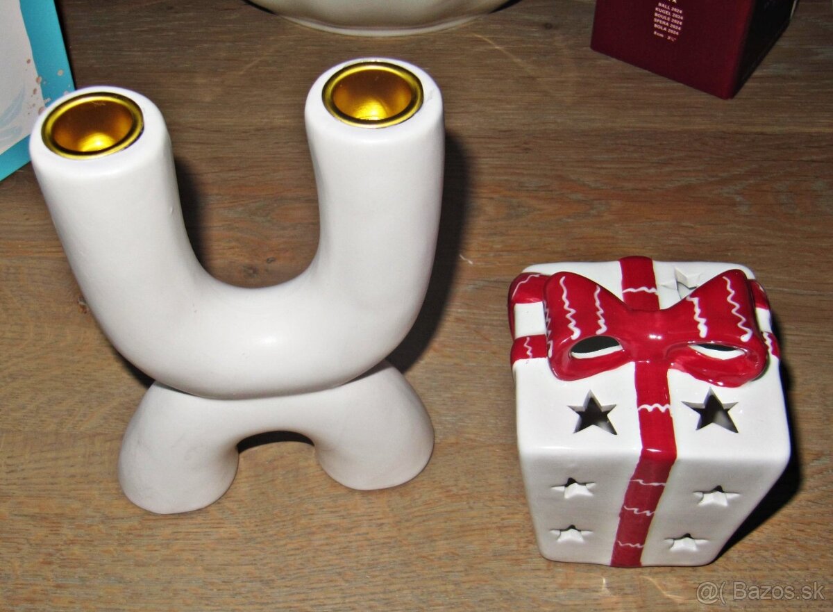 Mám na predaj svietnik z keramiky. Je vysoký 15 cm a je na dve sviečky. Dekorácia s mašličkou je vysoká 9,5 cm a je z keramiky. Predávajú sa len spolu. Cena za obidve dekorácie je 5 eur. Osobný odber alebo poštovné je 4 eur platba vopred na účet. Nevolať, píšte prosím na e-mail.