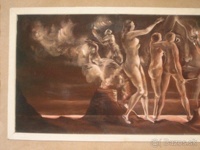Original olejomalba "Objavenie Ameriky", rozmer cca 50 x 120 cm