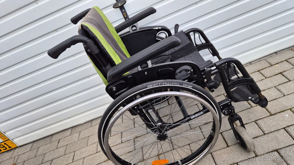 Kolesá predné plne, zadne nafukovacie schwalbe . výklopne lakťové opierky výškovo nastaviteľne