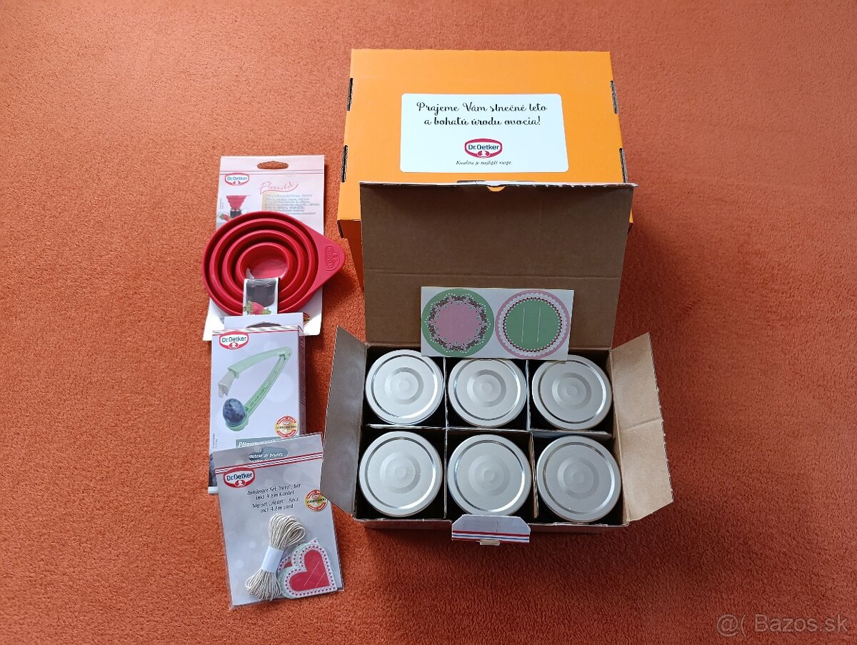 Predám sadu výrobkov značky Dr. Oetker na zaváranie. Jedná sa o darčekovú súpravu v peknej krabici, čo môže byť aj vhodný darček pre šikovnú gazdinku. Darčeková súprava obsahuje :