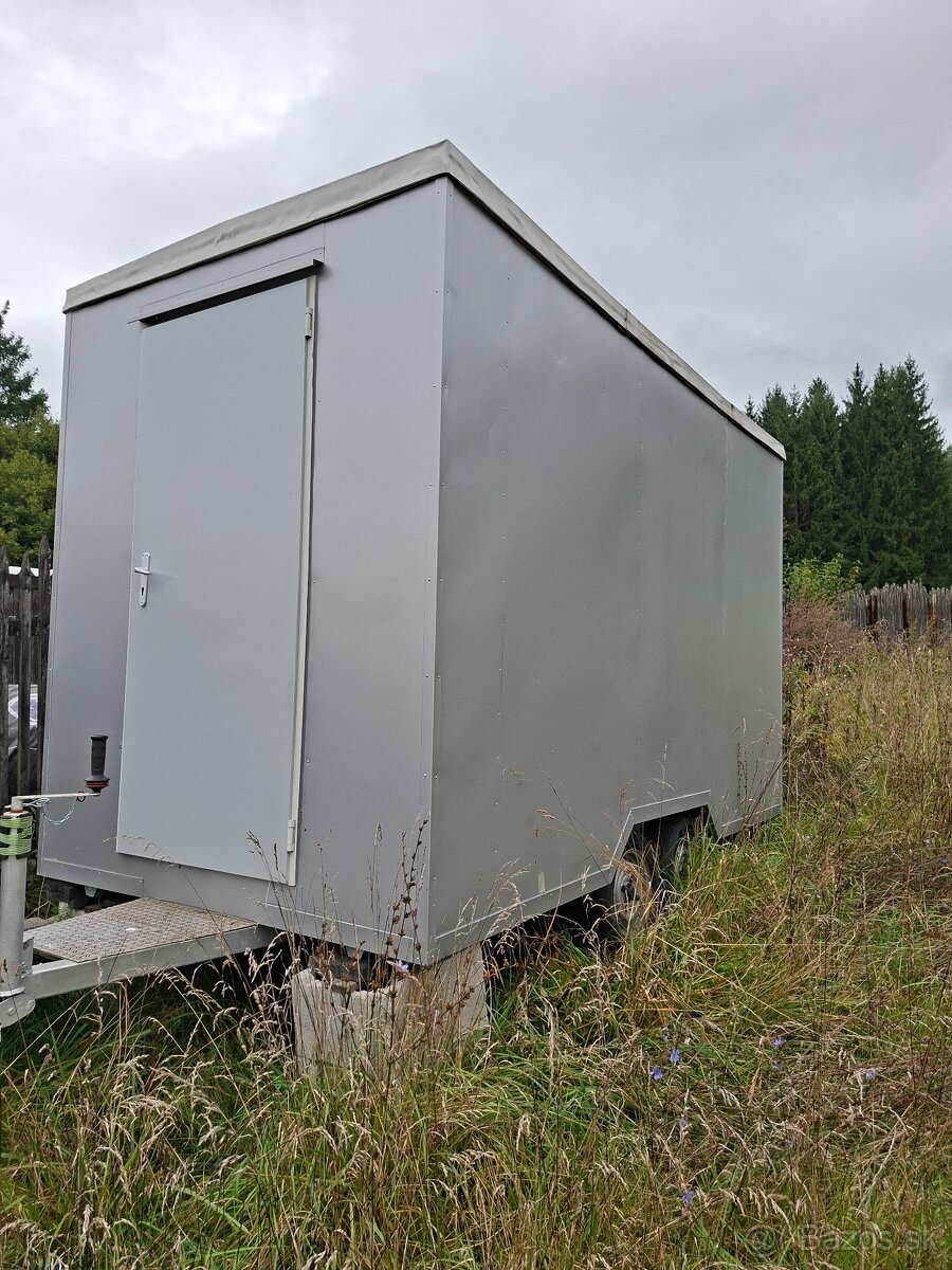 Predám pojazdnú kanceláriu-príves (rozrobený projekt). Rozmer 200x400 cm. Zateplená 5cm izoláciou ( 2cm exturdovaný polystirén +3 cm polystirén). Zrealizovaná sadrokartónová konštrukcia ako príprava na obloženie podĺa vlastného výberu-steny aj strop). Z vonka aluzinkový plech. Strecha tiež izolovaná polystirénom a ako krytina strešná fólia Fatrafol. Vonkajší materiál aluzinkový plech. Ako podlaha vodovzdorná preglejka hrúbky 18 mm. Šasy prívesu opieskované a pozinkované žiarovým zinkovaním. Disky tiež opieskované a nanovo nastriekané v lakovni. Nové, nikdy nejazdené gumy. K prívesu sú aj pozinkované schody. Jedno plastové okno 60 x 120 cm. Príves je bez pp. Prevoz bez problémov na prevozných značkách.
