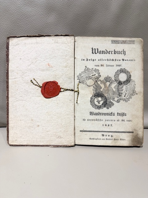 Predám cestovnú knižku/wanderbuch/ z roku 1827 s rôznymi cestovnými záznamami a pečiatkami