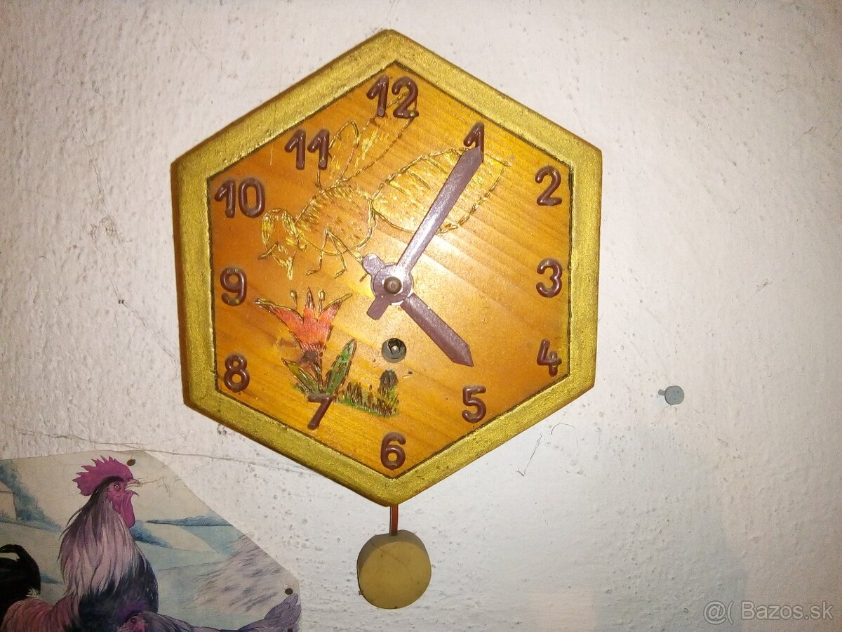 Predám naťahovacie nástenné hodiny s motívom včely. Vhodné ako dekorácia pre včelára alebo zberateľa. Nefunkčné.