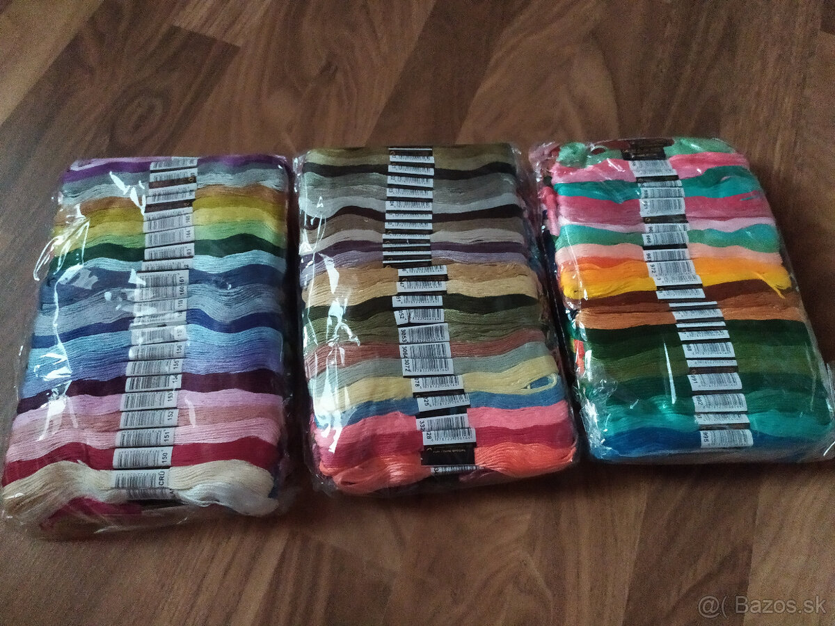 Končím s vyšívaním a predávam rôznofarebné vyšívacie mulinky - dva sáčky na foto, nové nepoužité 346 ks, spolu 75 €