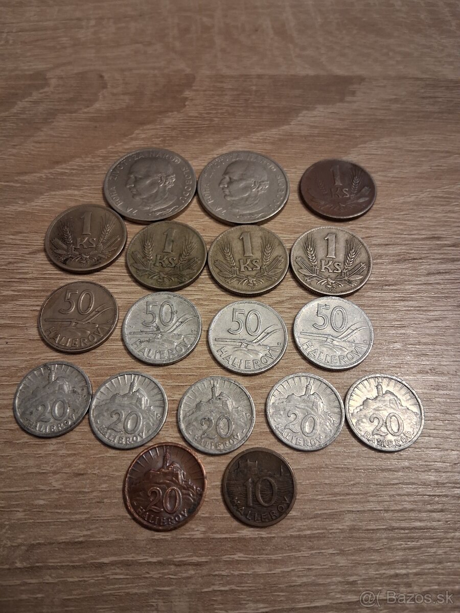 Predam mince slovenske z roku 1939 až 1945 vsetky naraz cena 50 eur