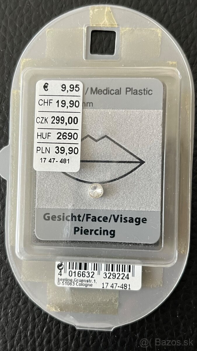 Nový zabalený piercing/labreta, 925 striebro, tyčka je Bio-flex zapichovatelná.