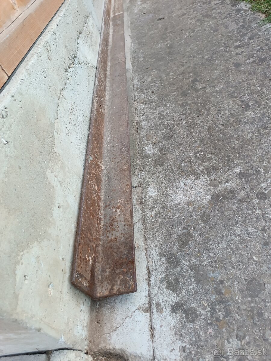 Predám železny profil tvaru L.rozmer: dĺžka 458cm širka 90x90mm hrúbka 9mm úplne rovný.