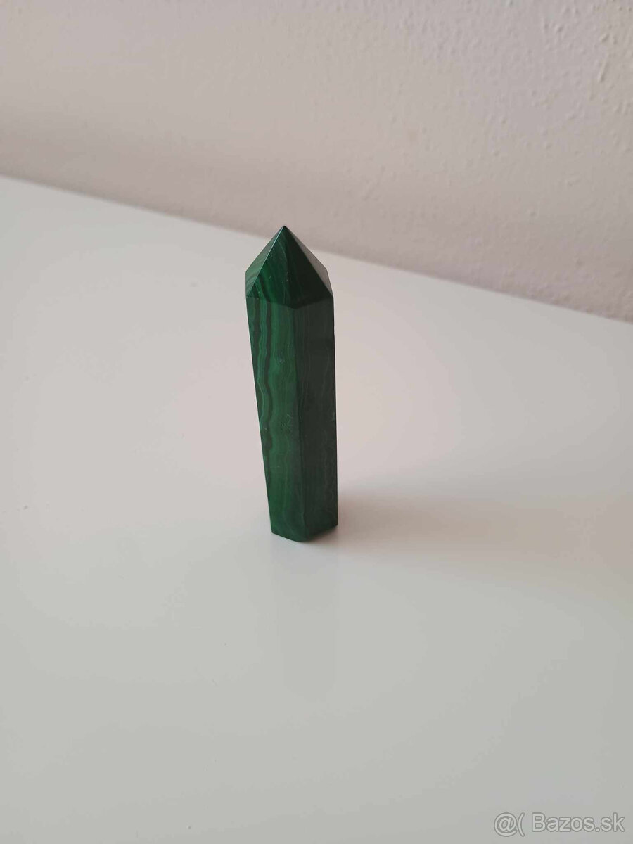 minerál obelisk malachit vaha 46g, odstraňuje z tela škodlivé energie a preto je vhodné prikladať ho na všetky choré a bolestivé miesta