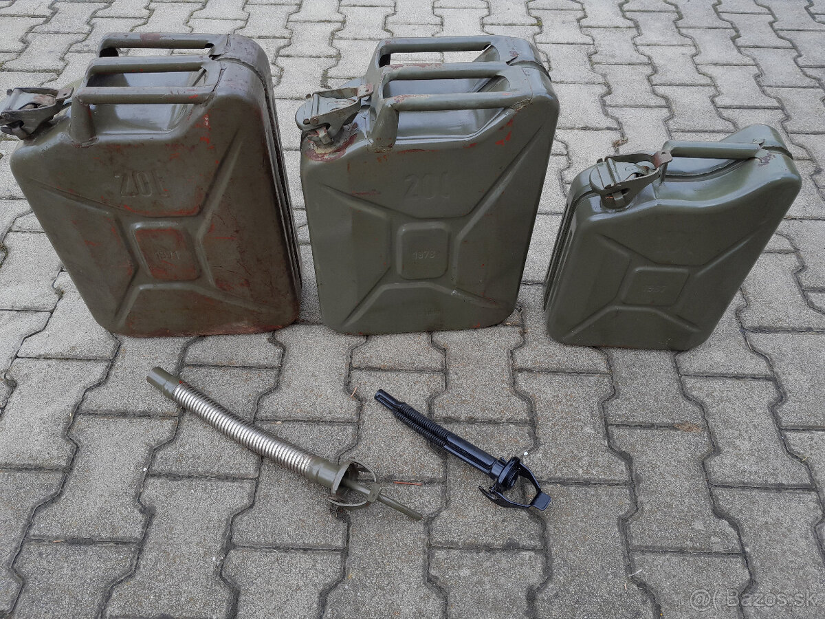 predám plechové kanistre 2x20l 1x10l, k nim aj napúšťacie hadice. Cena spolu 45. Na trase LC-RS viem doviezť.