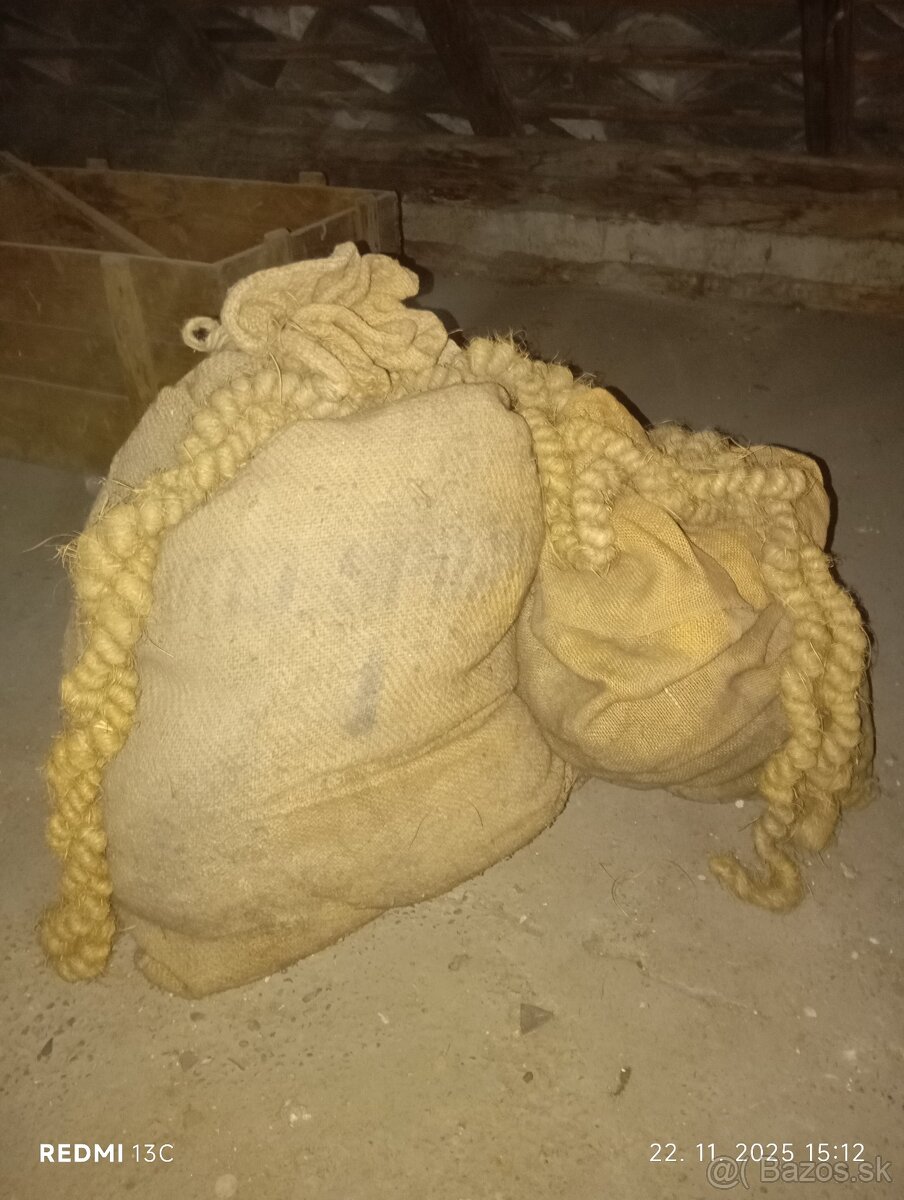 Ponúkam staré Jutové vrecia a staré laná. Laná sú vo vreciach Nálezový stav. 49€ . Pekná originál dekorácia do domu, chaty, Drevenice... Mám viacero zberateľských kúskov. Rozpredávam časť zbierky. Kliknite na moje meno. Možno sa bude páčiť niečo iné. Ďakujem Milan. 0905 986 509