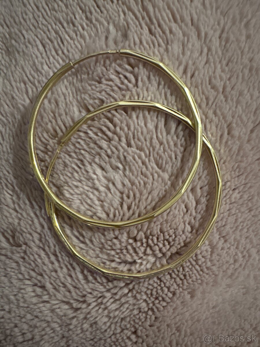Predám zlaté kruhové náušnice v krásnom elegantnom prevedení. Náušnice majú jemne brúsený povrch, ktorý im dodáva luxusný vzhľad.