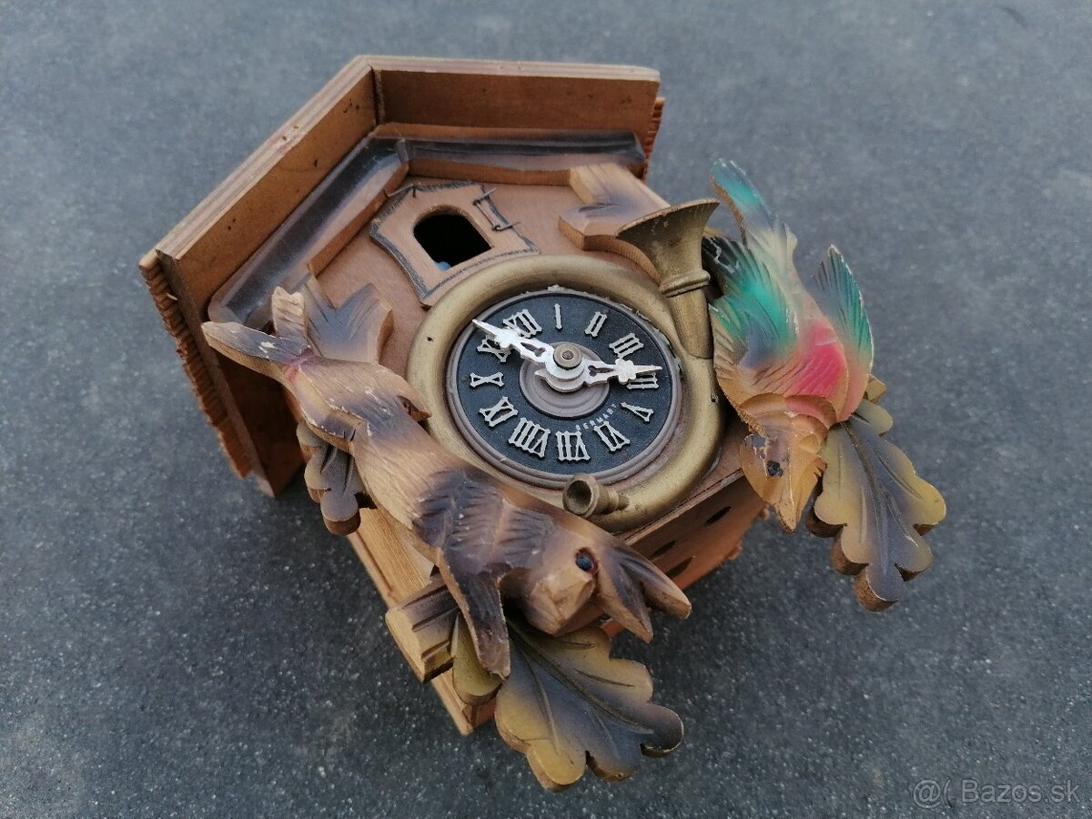 Predám starožitné nemecké kukučkové hodiny v nálezovom stave. Cena 35€.