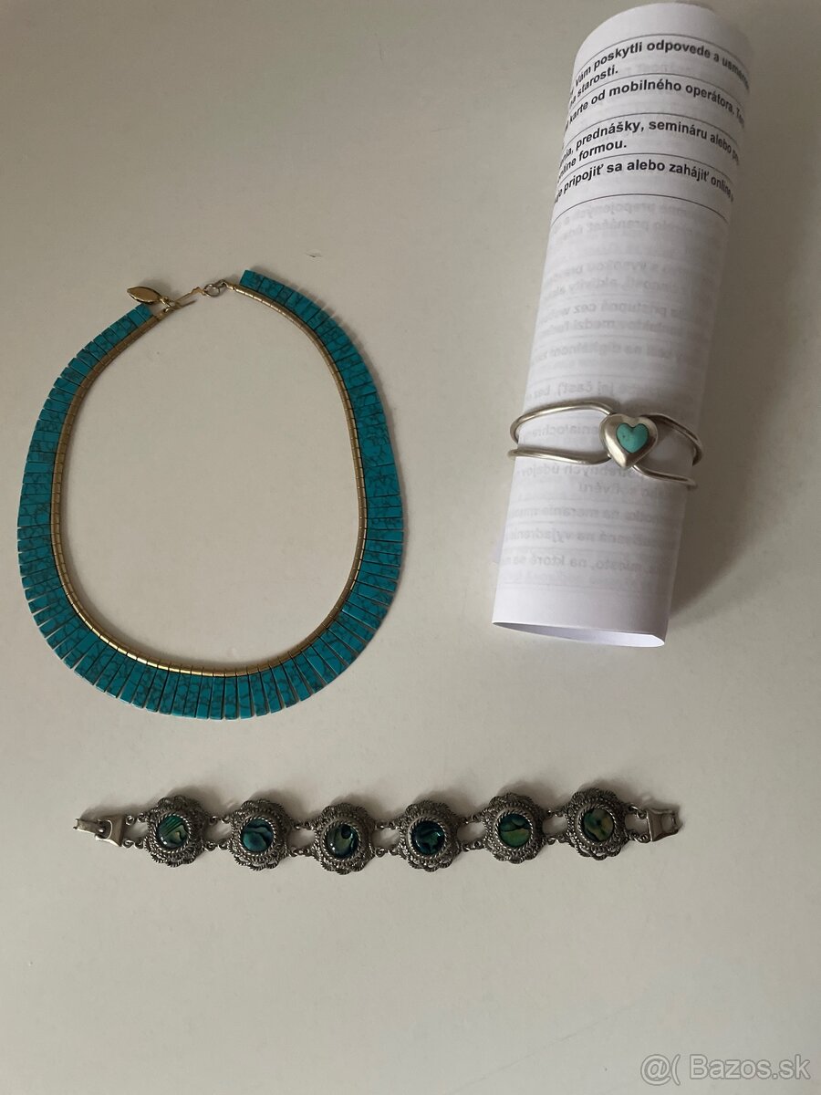 Strieborný náramok s tyrkysom srdiečkom 25€,náramok s opalmi 20€, tyrkysový náhrdelník 20€