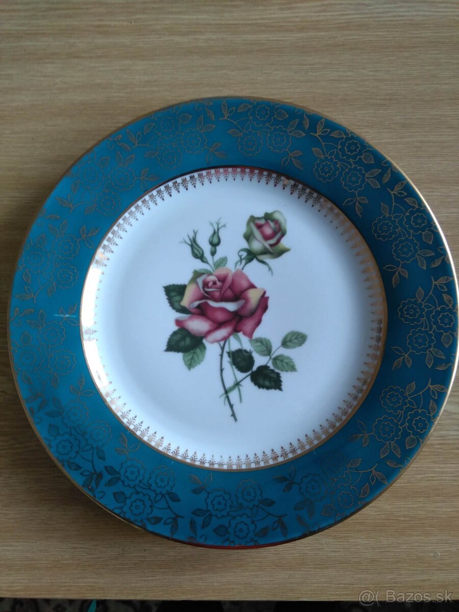 Dva značené servírovacie taniere, priemer 26 cm, so zlatou a zelenou linkou, bez poškodenia. Cena za všetky tri spolu 10€ + pošt. Možný aj osobný odber.