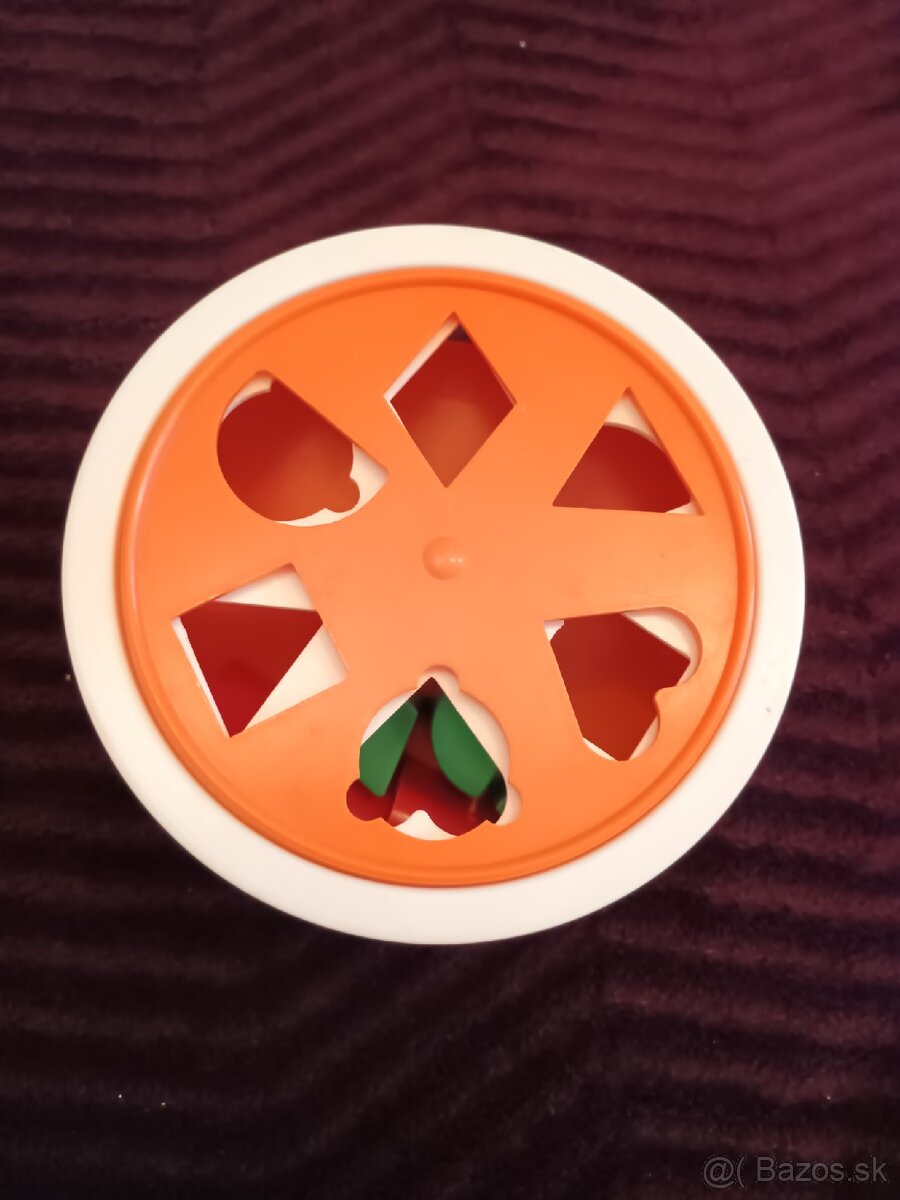 Predam originalnu retro hracku - Hra zrucnosti. Na vlozenie vkladacky musi dietatko pootacat vrchnu cast, aby sa rovnake otvory prekryli a vkladacka tam isla vlozit. Krabicu k hracke nemam.