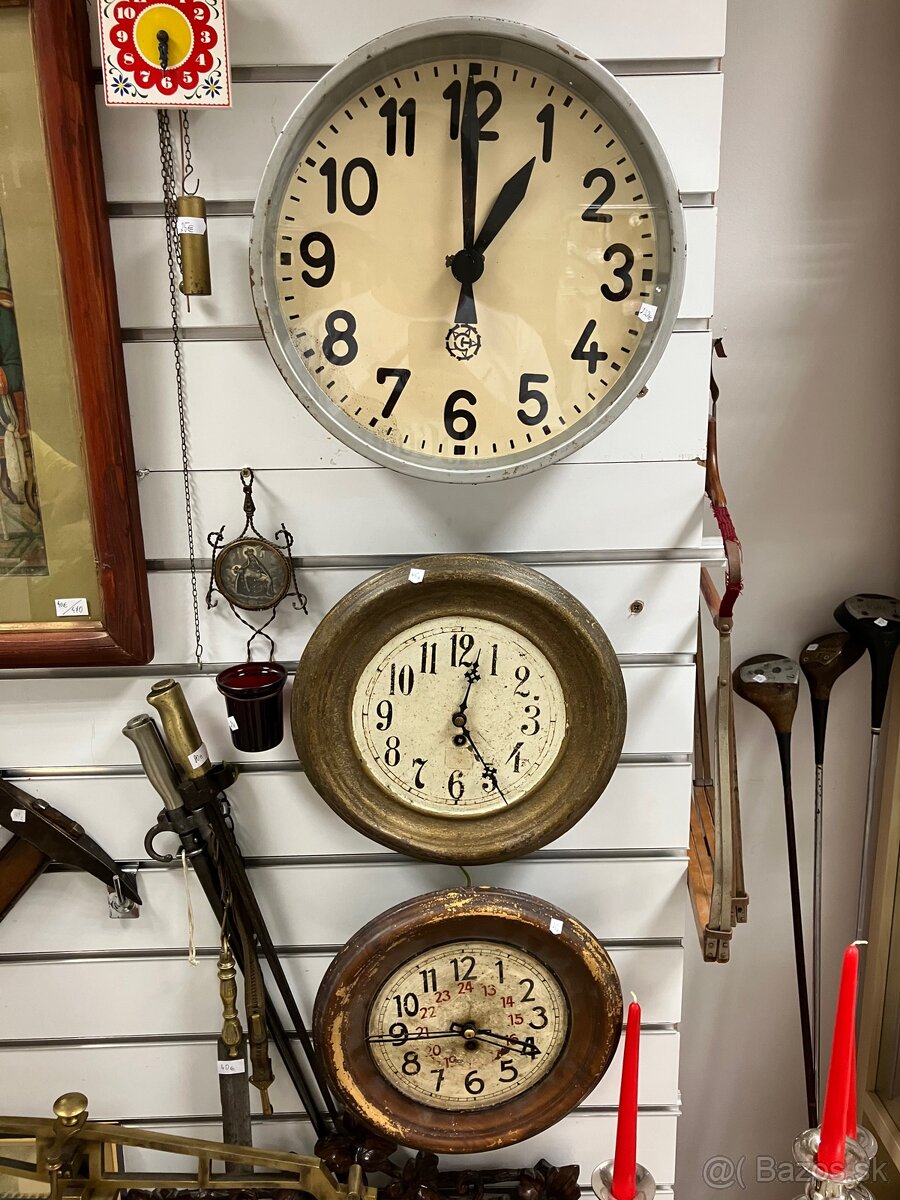 • Veľké industriálne (verejné) hodiny, zrejme z fabriky, školy, stanice alebo úradu