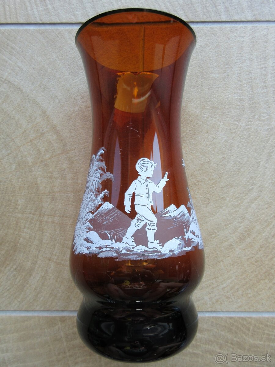 Predám starú sklenenú vázu z bledohnedého skla so zaujímavým vzorom.Rozmery: Výška je 18 cm a priemer v najširšej časti 7,5 cm.Excelentná práca sklárskych majstrov.Výnimočný kúskok vo veľmi zachovalom stave.Malinký oťuk vo vrchnej časti.Viď foto.