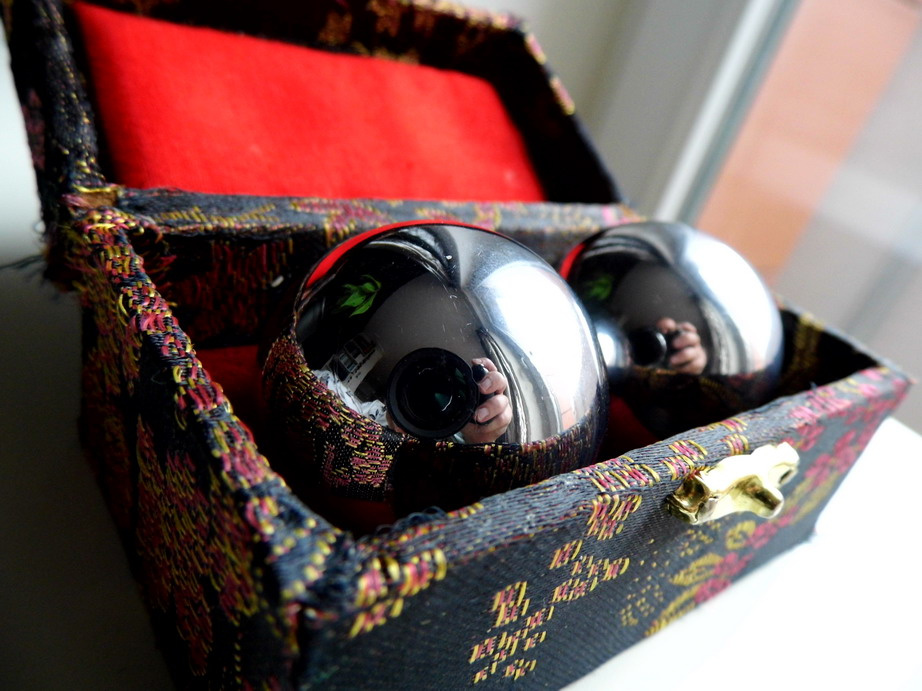 Predám set 2 gulí baoding, ťažké, reflexné, so zvoniacim efektom pri pohybe. Spolu s puzdrom.