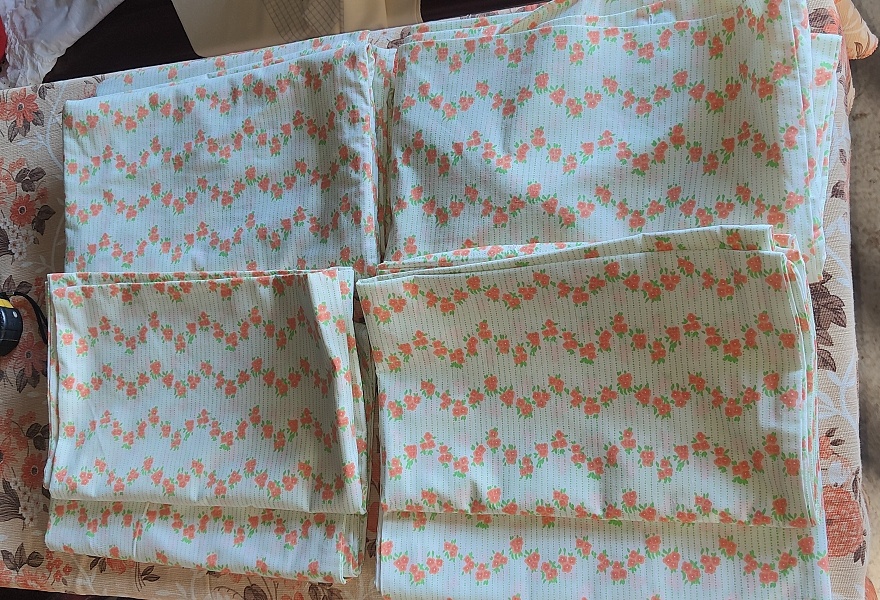 krásne kvalitné retro posteľné prádlo uloženka, set obsahuje 2 x palpon s rozmerom 200x150cm, 4x vankuše s rozmerom 95x80cm, na jednom palone a vankuš maličke fliačiky od uskladnenia, treba oprať určite sa to dá vyprať , cena je za celý set spolu, cena bez pošty, preferujem prevod na účet,viac info rada poskytnem mailom,alebo na telefone , pozrite si aj ďalšie moje inzeráty a ušetrite na poštovnom, posielam aj packetou