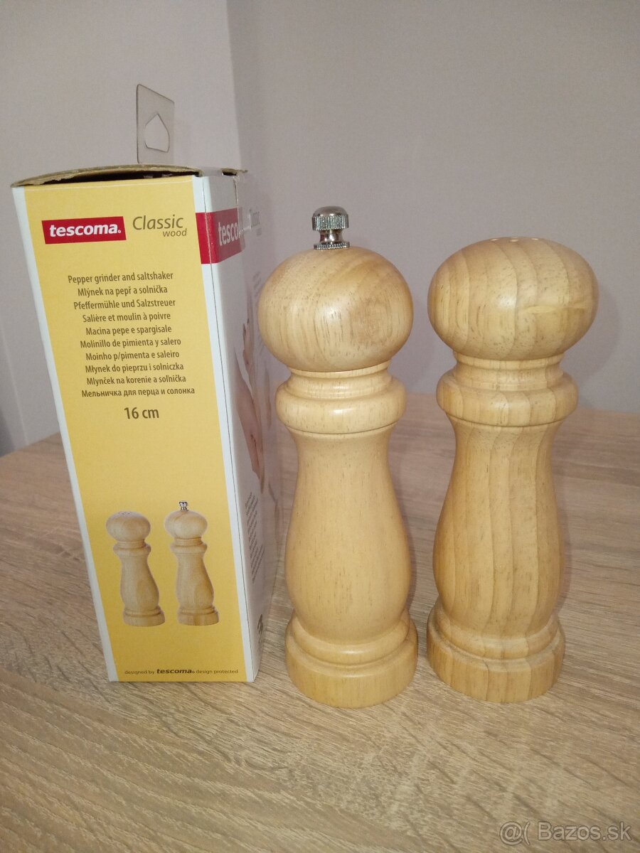 Predám nepoužívaný drevený mlynček na korenie a solničku TESCOMA.