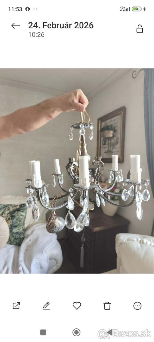 Nadherny starozitny luster - [20.3. 2026]Nadherny starozitny luster. Jedine co treba je vymenit kable kedze je to stary luster ale krasny.