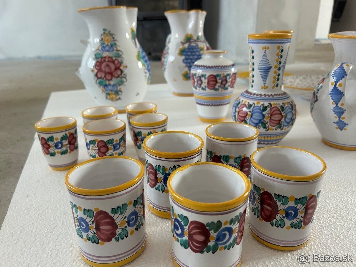 Vsetko je v zachovalom stave bez poškodenia alebo prasklín až na jeden veľký džbán na ktorom je odlomene uško viď na foto. Najradšej by som bola keby sa to preda v celku . Moja predstava ceny je za všetko okolo 130 € Pre viac info má kontaktujte tel: 0911544319