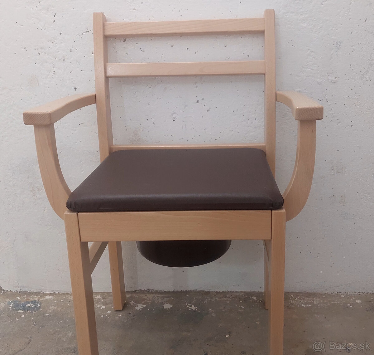 Predám novú nepoužívanú toaletnú stoličku. Je vyrobená z bukového masívu, sedadlo potiahnuté koženkou. Pod sedadlom je vložené plástové toaletné vedro s krytom. Šírka sedu 41-51cm, nosnosť 120 kg, hmotnosť 15,5 kg. Cena 40 €. Len osobný odbor. Viem doručiť do Senca, Nitry,Jablonice.