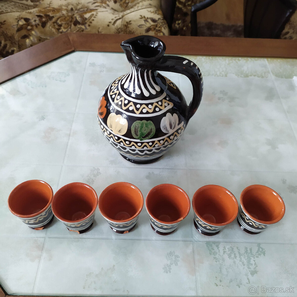 Súprava,6+1, keramicka - [24.3. 2026]Predám túto keramickú súpravu,ručne zdobená,70-te roky,karafa + 6 pohárikov,,100% stav,výška karara 20cm, poháriky 4,5cm. Cena 25e