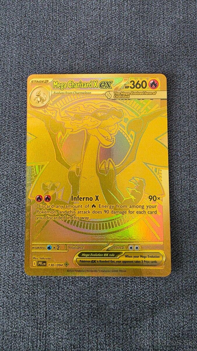 Predám môjho zlatého Mega Charizarda EX z kolekcie Phantasmal Flames. Po vytiahnutí hned putoval do sleevu a top loaderu. Stav karty je 100% bez akéhokoľvek poškodenia. Nebránim sa ani nejakej protihodnote v podobe sealed produktu/ov (boosterbox etb, bundle). Pri predaji bude karta bezpečne zabalená, aby nedošlo k akémukoľvek poškodeniu + posielam foto v priebehu balenia + darček k objednávke.