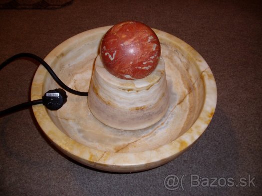 Leštěný přírodní kámen. Rozměry mísy: průměr vrchu 39,5cm,výška 18cm. Průměr koule 12 cm, celková výška fontánky 29cm. Celkově dobrý stav, kolem dna mísy nepatrné oťuky. Malé čerpadlo žene vodu z mísy pod kouli která se otáčí a voda stéká zpět do mísy. Nevolejte! Pouze pište přes formulář. Mrkněte i na mé další nabídky.