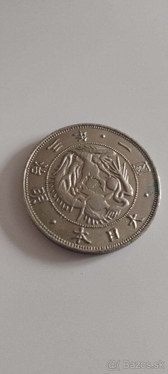 Predám starožitnú japonskú mincu – drak (1 Yen, Meiji obdobie)