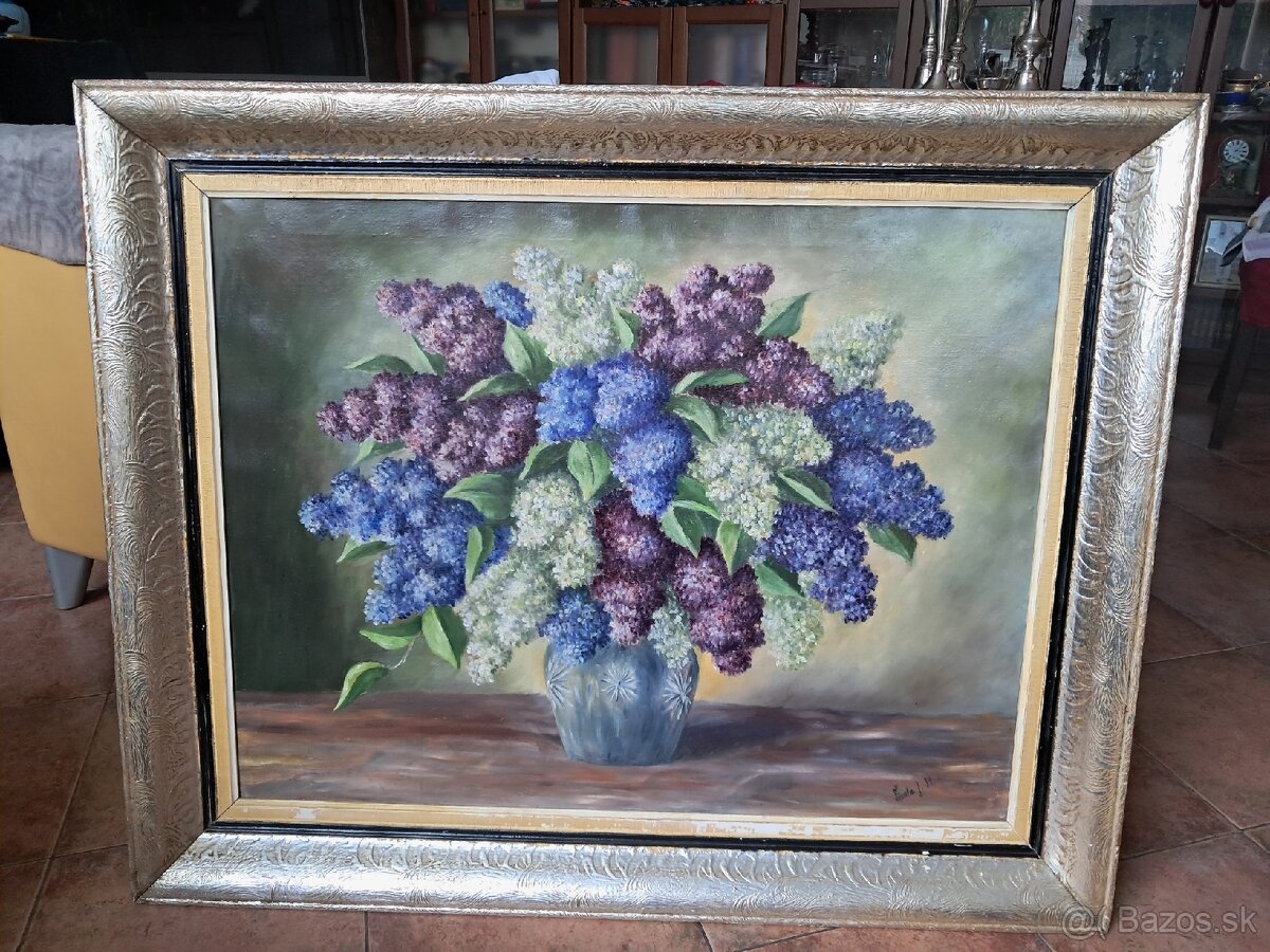 Predám veľký obraz v ráme, olejomaľba na plátne, podpísaný. Stav zachovalý, rám je trochu ošúchaný. Cena 220 euro.