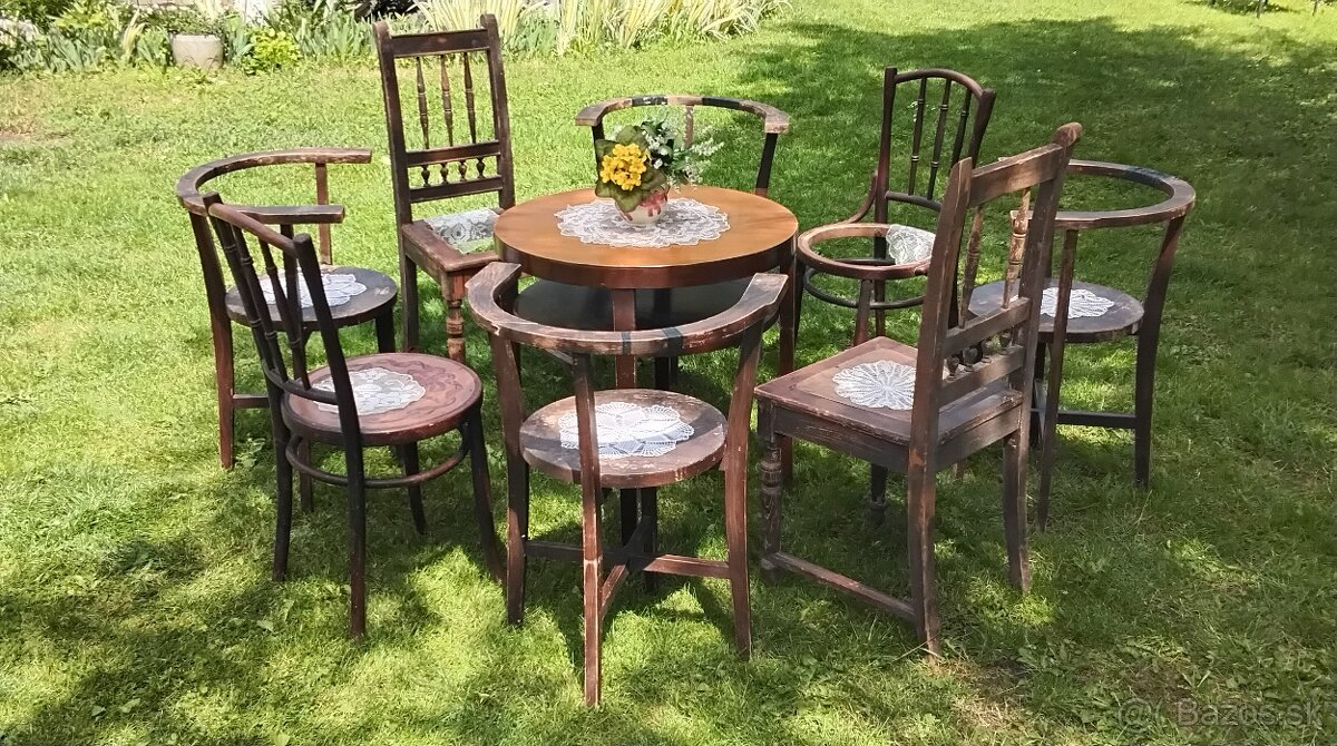 Staré stoličky, okrúhle stôl...