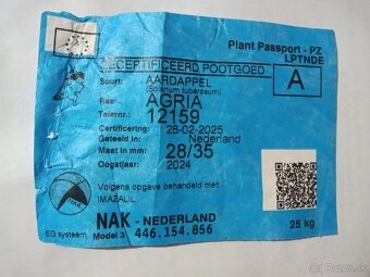 Predám sadbove zemiaky odroda AGRIA. Sadene z certifikovanéj sadby(obr.)