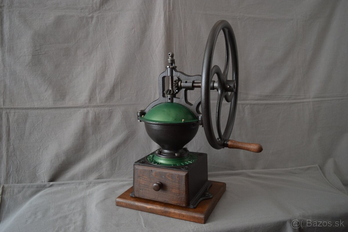 Mlynček na kávu - [19.3. 2026]Predám liatinový mlynček na kávu 40 cm výška, váha až 7 kg ozubenie vo výbornom stave značený 120 rokov starý krásny zberatelský kus ozdoba každej chalupy,cena znížená na 150 eur