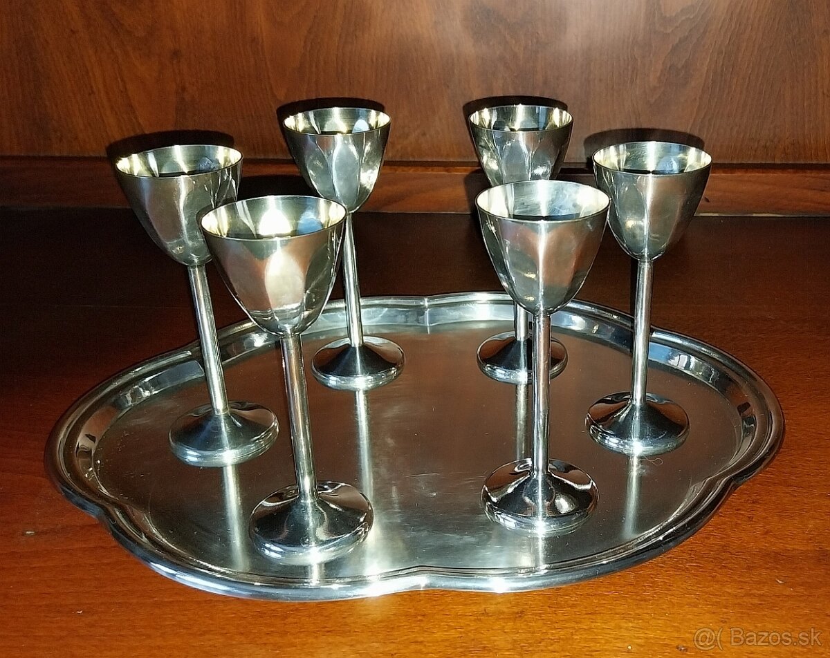 Predáme likérové poháre na stopke s táckou.