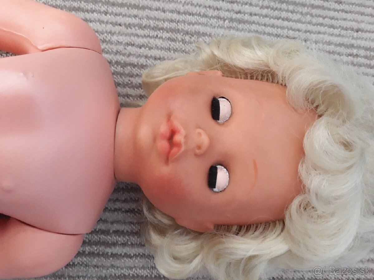 Placuca, chodiaca babika z 80.rokov. Ma zial znicene oci-zohladnene v cene. Vyska 65cm.