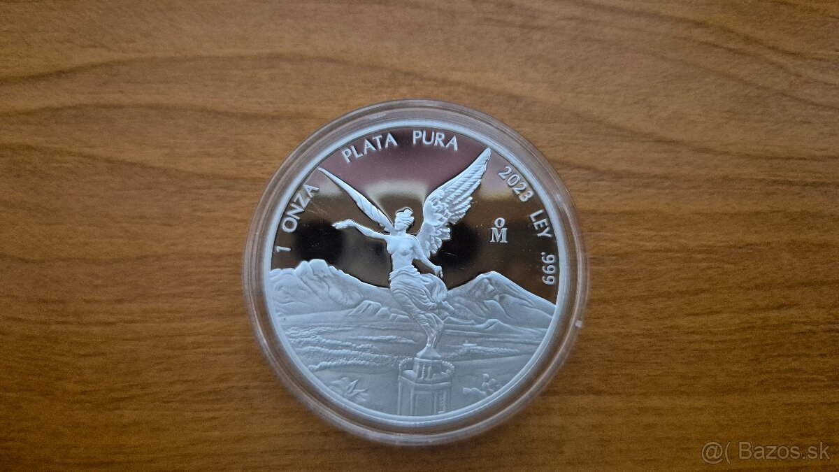 Ponúkam na predaj investičnú striebornú mincu Mexican Libertad z roku 2023 v prevedení PROOF, hmotnosťou 1 tr.oz. a rýdzosťou 999/1000 Ag.