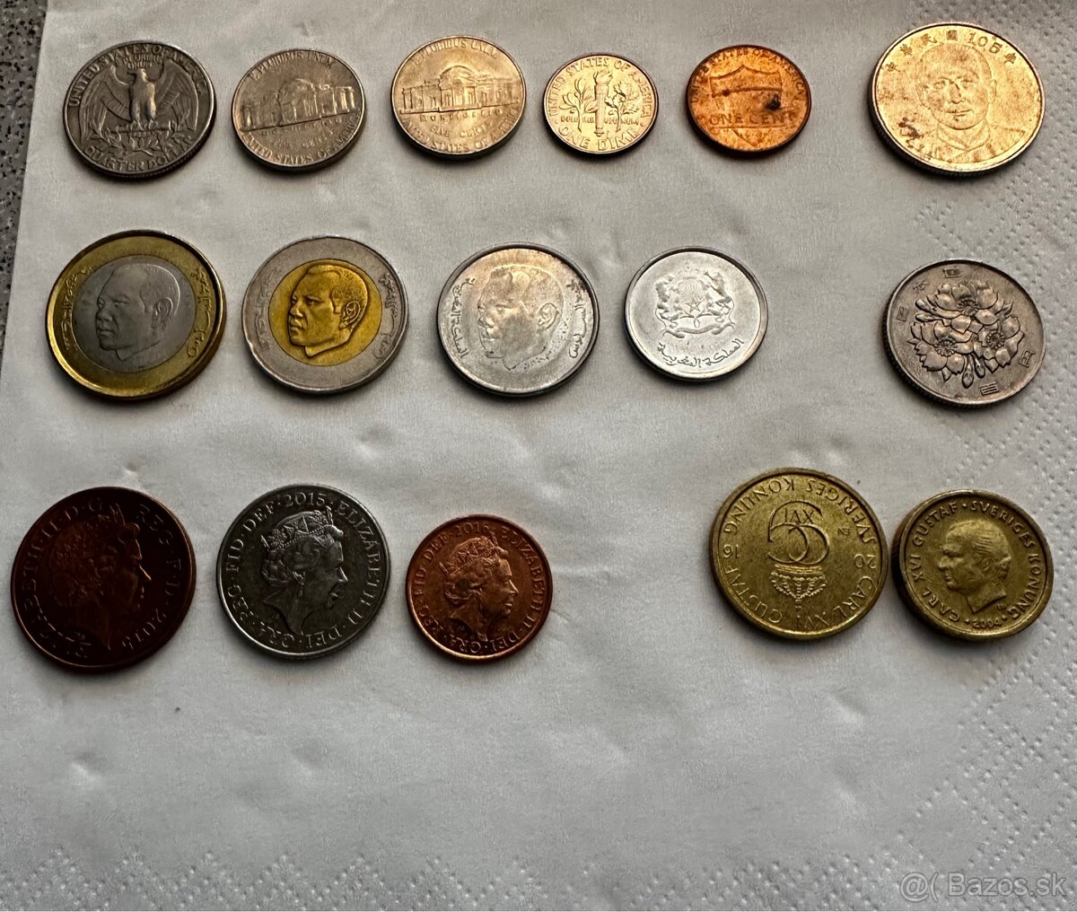 Predám mix mincí svet,USA ,Maroko,V.Británia,Švédsko,Taiwan,Japonsko.Stav:obeh Cena 4€+poštovné