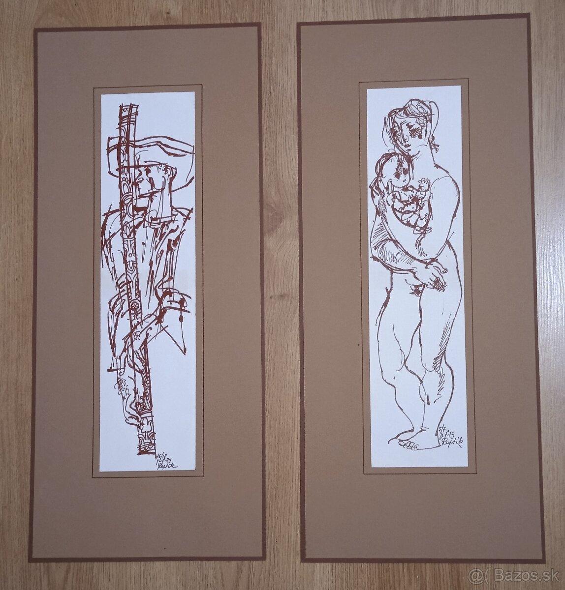 Predám 2 grafiky : ĽUPTÁK Oto : Postava, serigrafia, tlač 5/7, výrez 40,5x10cm, pasparta 58x25cm