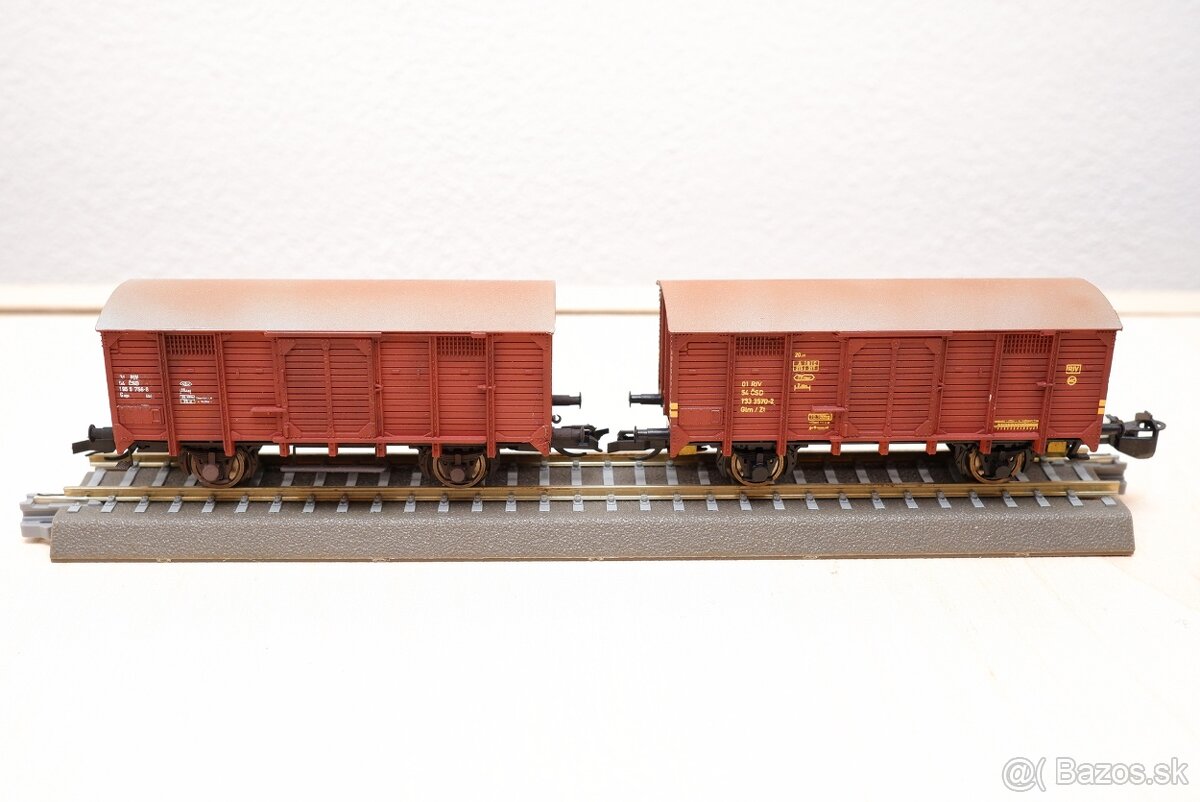 Upravené kryté vozne BTTB, kynematiky na Tillig spriahadlá, kovové dvojkolia, jeden má lepané doplnky. Cena za jeden kus 15€.