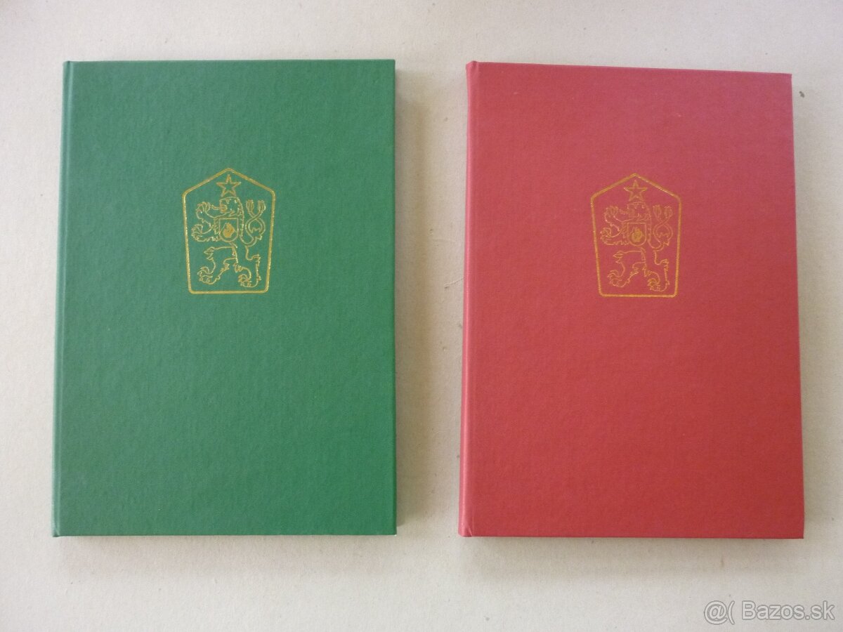 Predám v perfektnom stave , prakticky ako nový kompletný album A4, rozmeru 21,5x30,5cm, farba albumu -černená, zelená, hnedá, album obsahuje 8 strán z tvrdého čierneho kartonu s ôsmimi priehladnými páskami na jednej strane na poštové známky a pergamenové medzilisty. Album má pevnú väzbu a knihársky poťahovaný koženkový materiál s krásnou zlatou razbou československého štátneho znaku na obale. Perfektný album pre malé ucelené partie zberatelov československých známok.