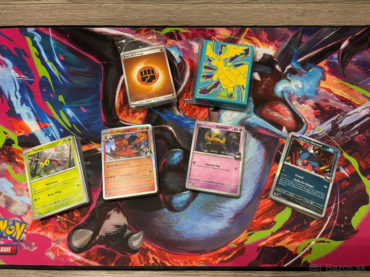 Pokémon karty Mega Evolution - [29.3. 2026]Predám originál pokemon karty zo série Mega Evolution. Karty sú obyčajné, holo a reverse holo. Je tam 133 kariet. K balíku pridám aj tinku podľa vlastného výberu, malá- 2€/kus, veľká 3€/kus. Cena je uvedená za balík bez tinky.