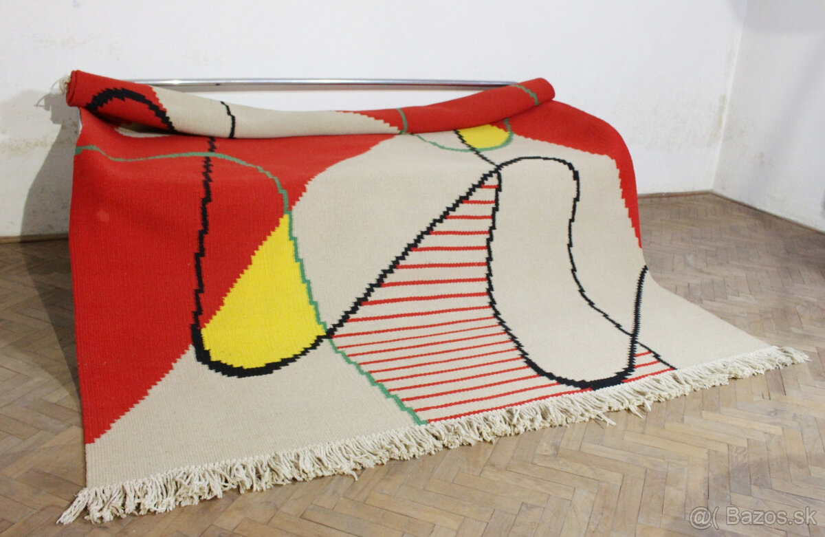 ponúkam na predaj krásny modernistický koberec,navrhnutý profesorom Antonínom Kybalom okolo roku 1950.ide o typický príklad československej avantgardy v období po druhej svetovej vojne.koberec je v top stave,strapce nie sú vytrhané.potrebné je iba profesionálne vyčistenie. rozmery koberca sú 350 x 195 cm.osobné prevzatie v okrese Topoľčany.na prípadné dotazy rád zodpoviem.prosím píšte na e-mail.ďakujem