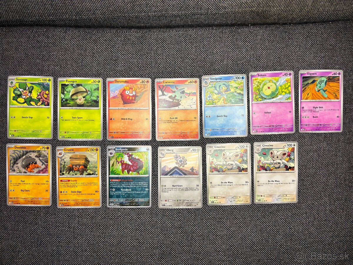 Pokémon karty Black Bolt a White Flare - [29.3. 2026]Predám originál pokemon karty zo sérií Black Bolt a White Flare. Karty sú obyčajné, holo a reverse holo. K balíku pridám aj tinku podľa vlastného výberu, malá- 2€/kus, veľká 3€/kus. Cena je uvedená za balík bez tinky.