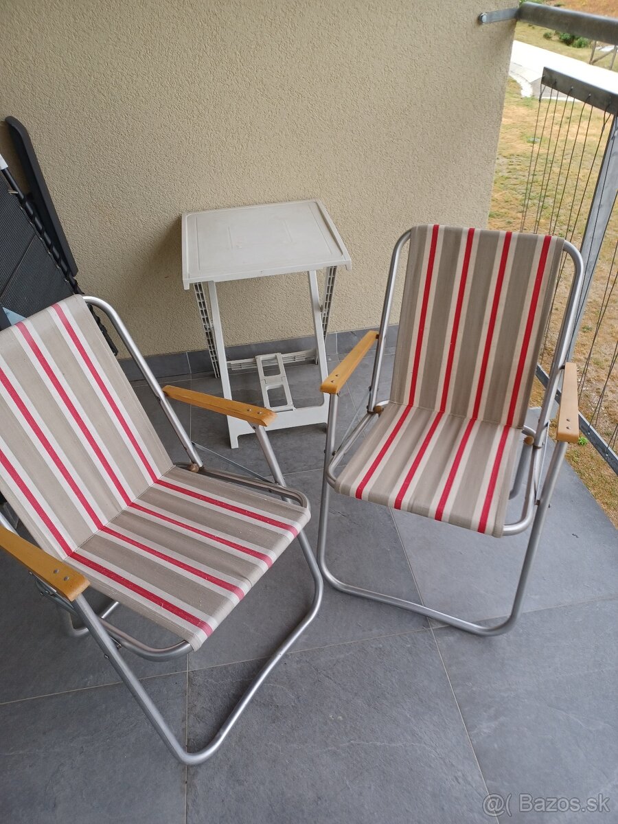 Predám dve skladacie stoličky a skladací stolik do prírody. Cena spolku je 16 € .Kontakt len na telefón nie na mail.